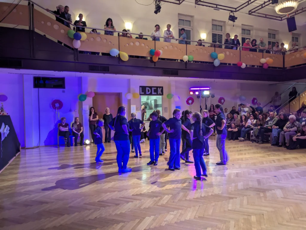 In Vereinsshirt, Jeans und passenden Schuhen standen sie auf der Bühne und zeigten nicht nur die erlernten Schritte, sondern vor allem eines: Freude am Tanzen und ein starkes Gefühl von Zusammenhalt. Aus der anfänglichen Nervosität entwickelte sich Schritt für Schritt eine spürbare Sicherheit auf der Bühne.